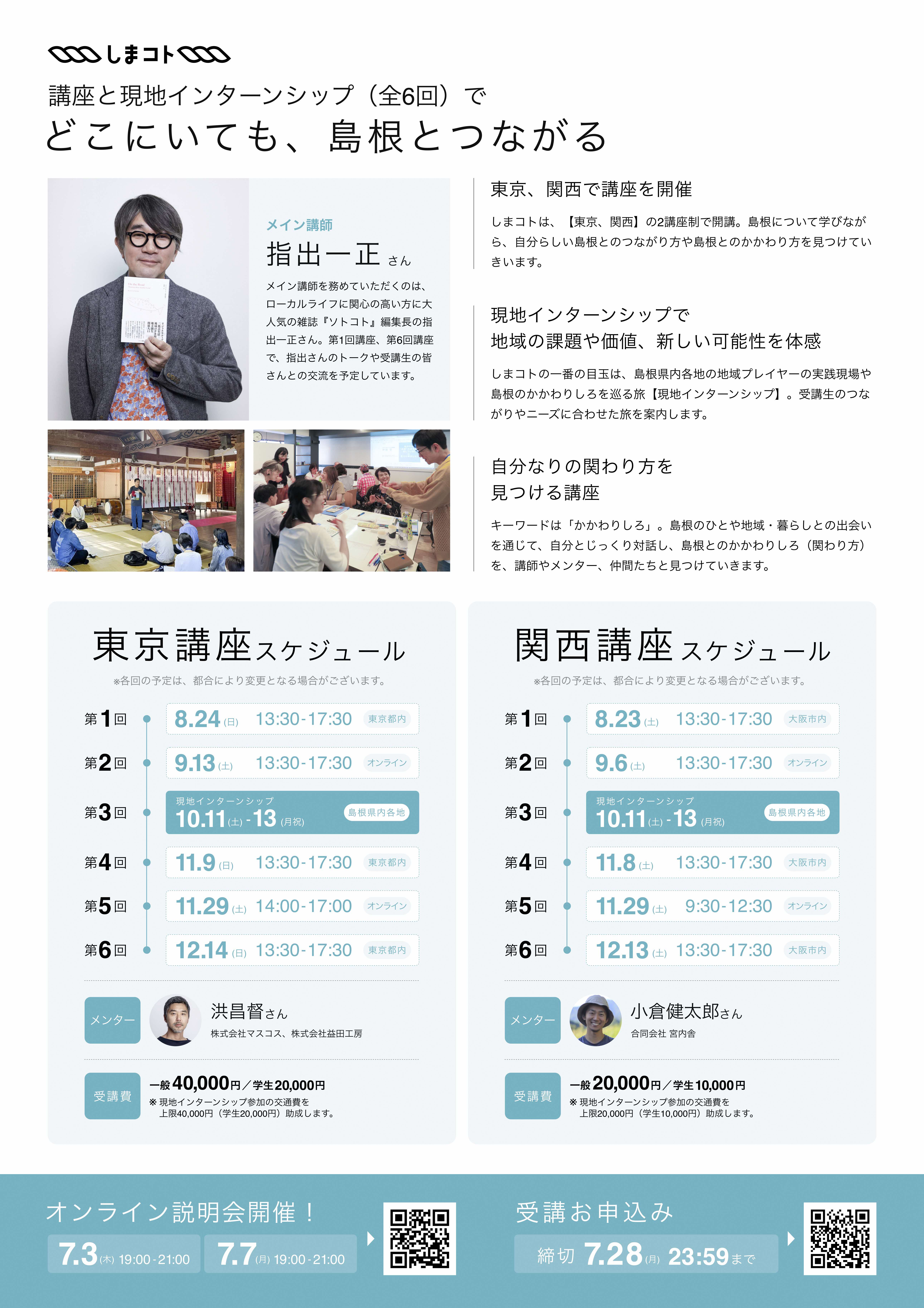 ※詳細は、右記ホームページ参照【しまコトアカデミー (shimakoto.com)】