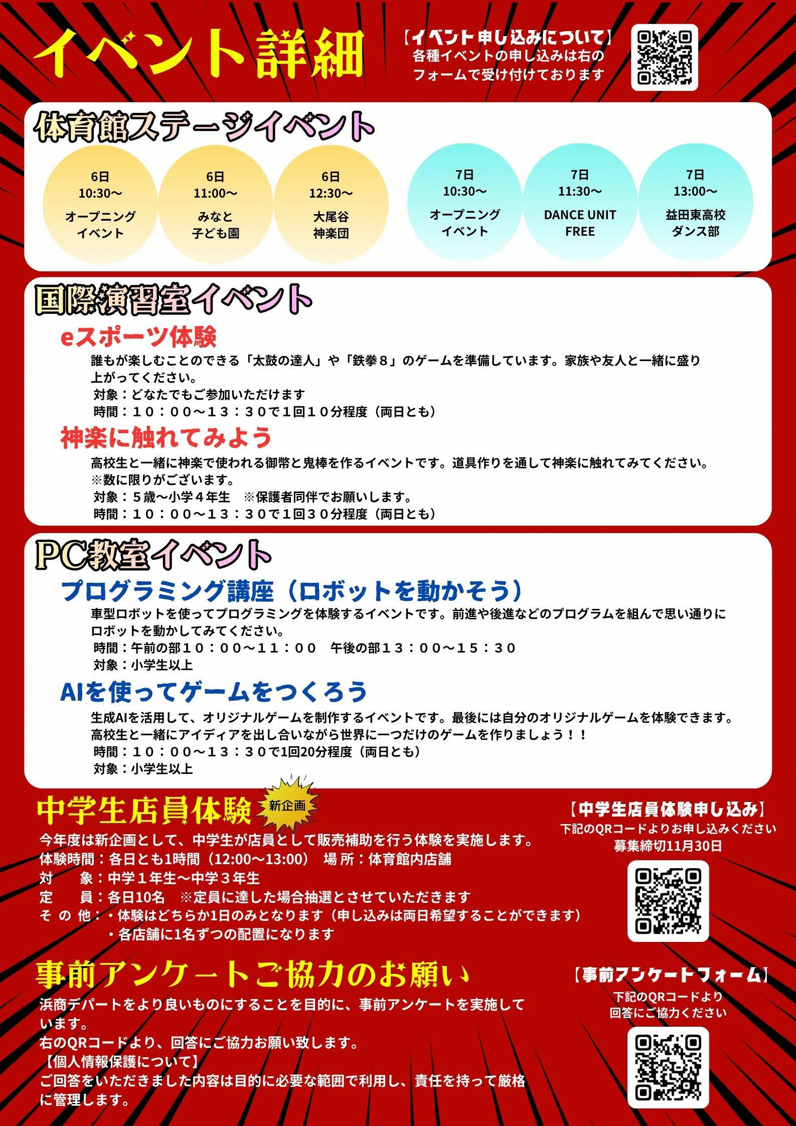 今年度は12月6日、7日に「浜商デパート2025 炎のデパート~百貨店ゼロ県なんて言わせない~」を下記のとおり開催します。ぜひ、会場にお越しください。